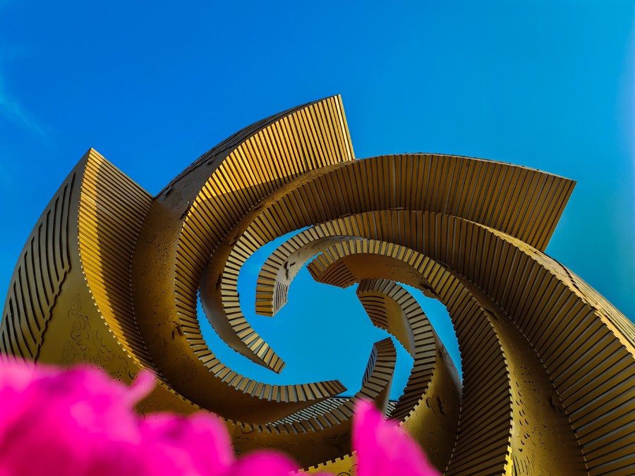 As the artist’s first public art piece created specifically for Jincheng, *Hundred Birds Paying Homage to the Phoenix* reimagines the urban landscape from a bird’s-eye view, becoming a new must-visit landmark for residents. Why not visit the Jincheng City Experience Center to keep this springtime rendezvous? Explore the stories of Jincheng woven into the artwork amidst the evening breeze and experience the poetry where art and the starry sky intertwine. (Photography: Zhang Jianqiang)